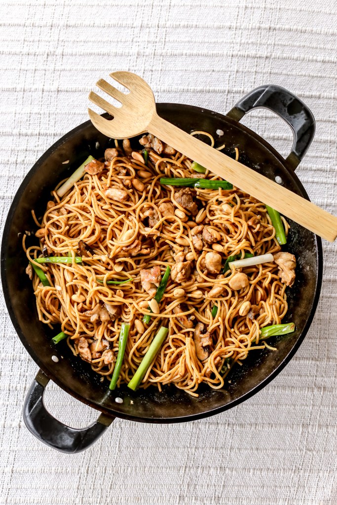 “A uniquely Yellow Cab pasta – Chicken strips, shiitake mushrooms, and roasted peanuts in a spicy oriental sauce.”